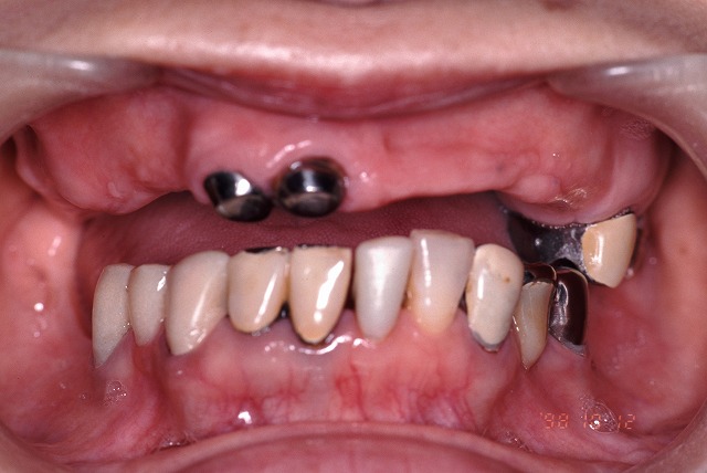 上顎右上2、左上13に抜歯と同時にインプラントし、セラミックメタルボンドブリッジ