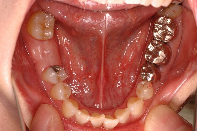 右下7:抜歯後、インプラント埋入+セラミックメタルボンドクラウン