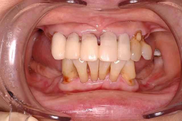 上顎:左右4にアタッチメントを装着し、部分床義歯装着(前歯6本は保険治療の硬質レジン前装冠装着)下顎:左右3にアタッチメントを装着し、部分床義歯装着